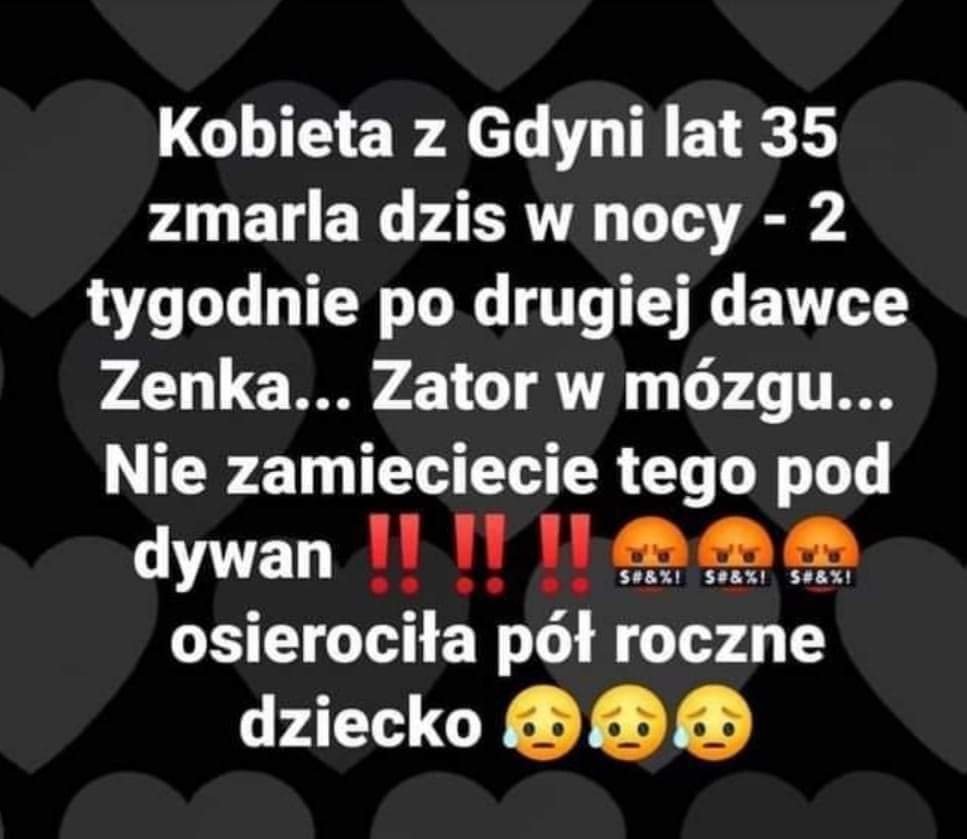 wczoraj pochowali dziewczyne 28 lat-zator plucny w poludnie sie w pracy zle poczula, wieczorem zmarla w szpitalu. ani wirusa ani tym bardziej szczepienia nie miala.