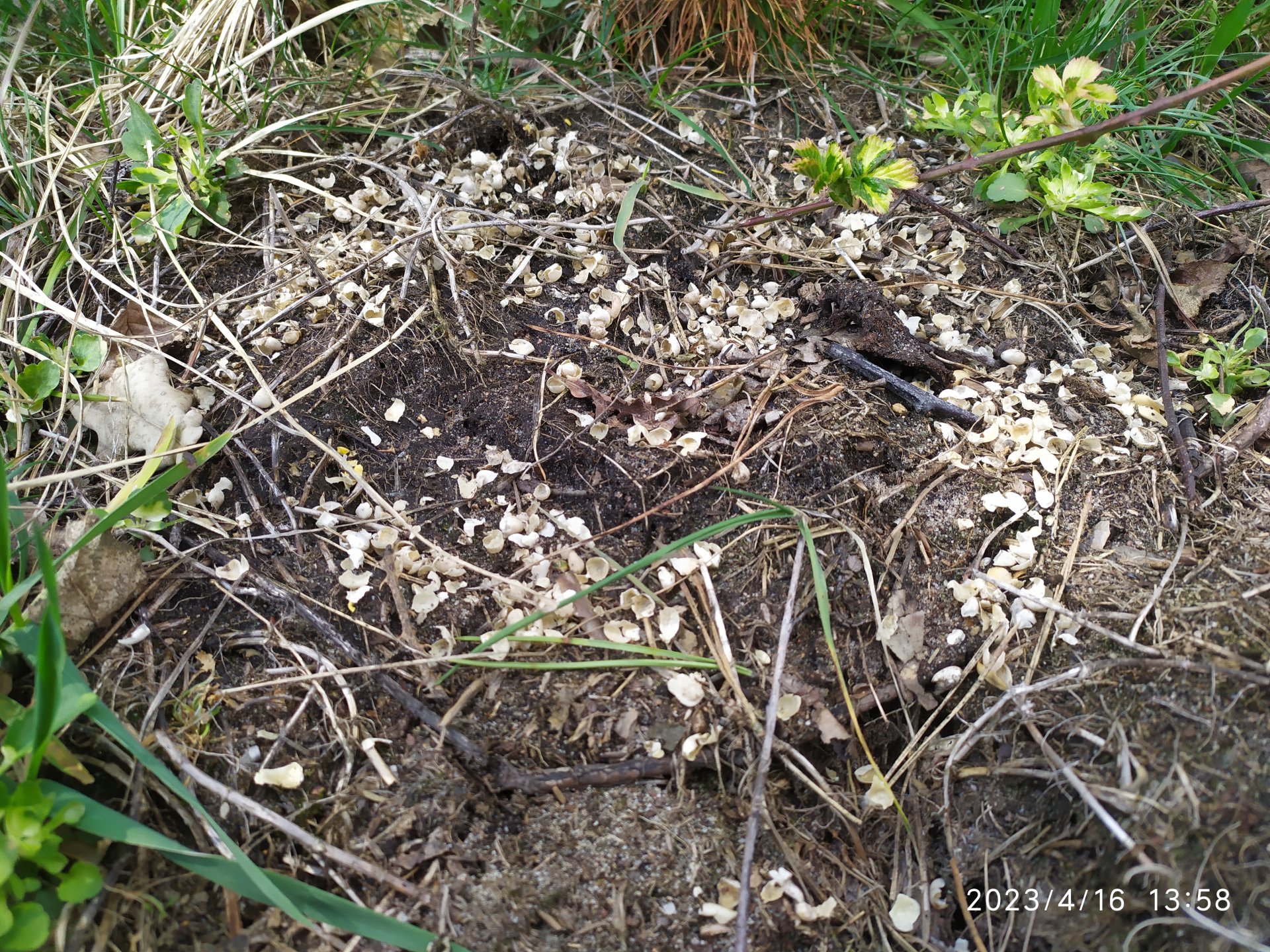 Patrzcie jak cos wcina mojego oskara. Same łupinki zostaly. Takie kupki znalazlem w paru miejscach tam gdzie ziarno zostalo na wierzchu. Myszy polne?
