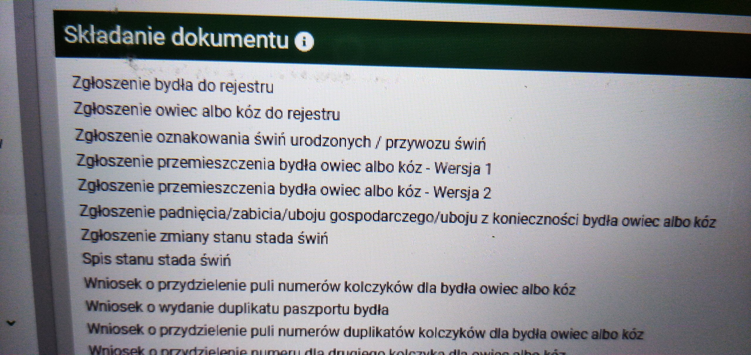 Pany który formulaż trzeba wybrać jak chce zgłosić sprzedaż lub kupno zwierzęcia od gospodarza do gospodarza?