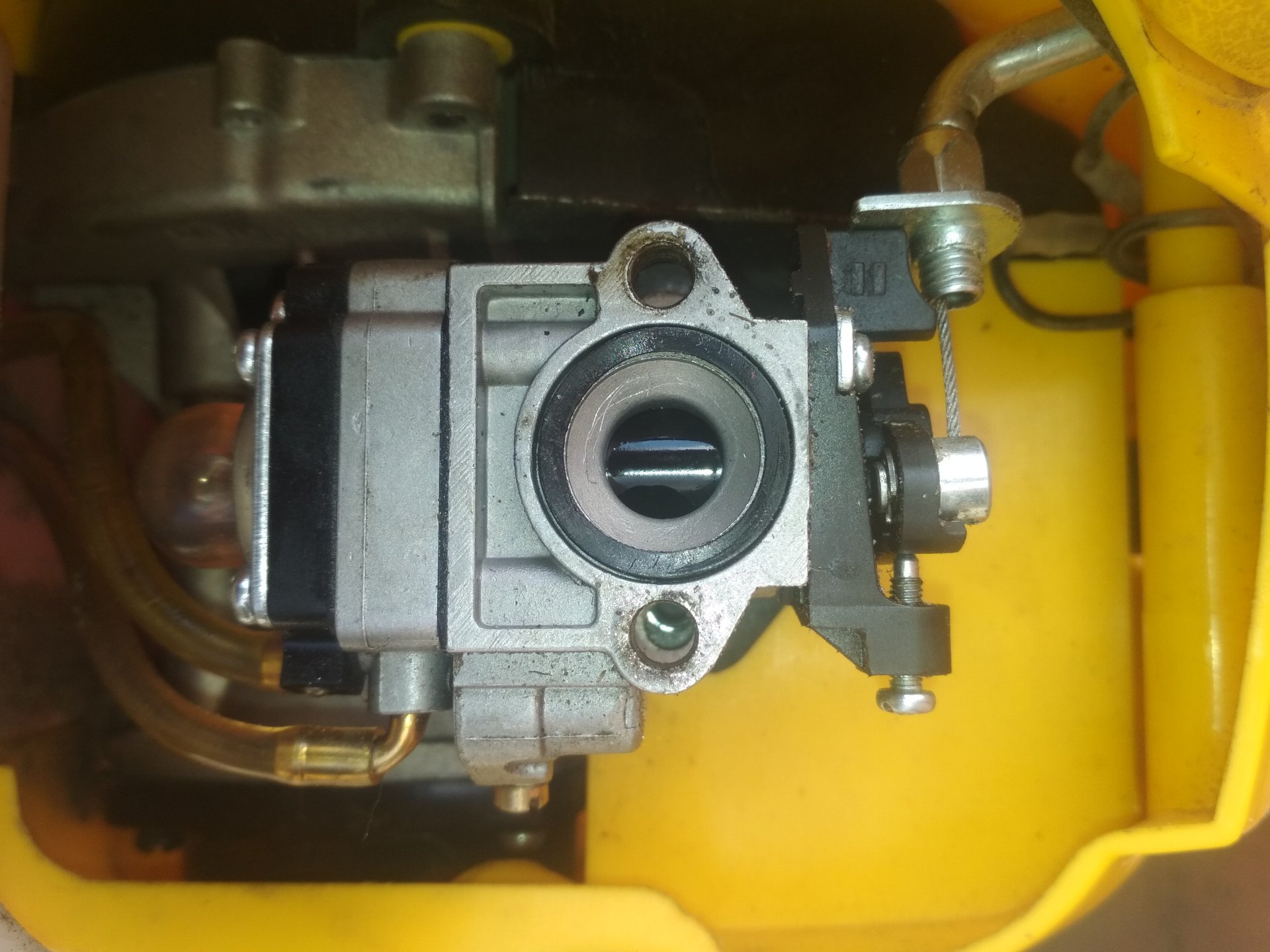 wyciągnąć gaźnik i zapodac fotki, ważna średnica gardzieli, w necie pokazuje, że to standardowy chiński gaźnik, klon Walbro - tzn patrząc na fotki silnika