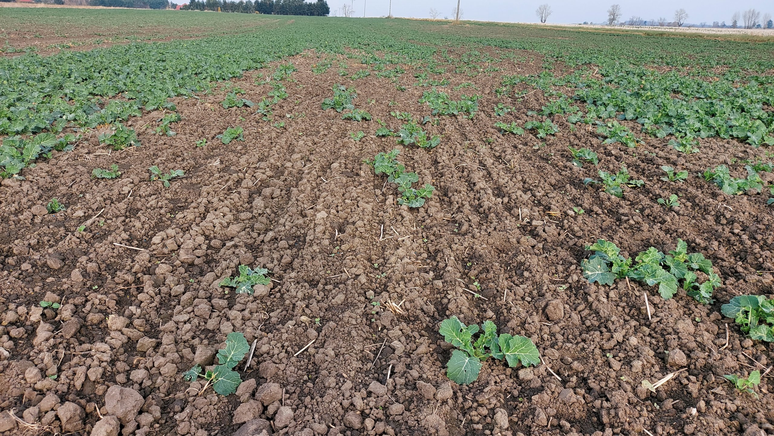 A moja wsiewka tak wygląda :) Ręcznie rozsypane nasiona na ziemię. Ale błąd zrobiłem bo końcówek nie zamknąłem w opryskiwaczu  i rośliny oberwały Tilmorem który je hamuje...