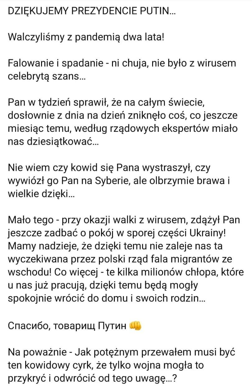 Co wy tak się przejmujecie jakimś Zuemskim czy jak mu tam. Chandlowalem z Ukraincami rosyjskiego pochodzenia i sporo mi opowiadali o tym ich rządzie, wcale wiele się nie różni od rosyjskiego. Też oligarchów od hol... I wszyscy grabią do siebie. Tak więc jeśli chodzi o mnie to h.... z nim niech go wieszają Ukrainy też mi jakoś specjalnie nie żal. Rozdawanie broni ludności cywilnej tylko zwiększy ilość ofiar a niczego nie zmieni.