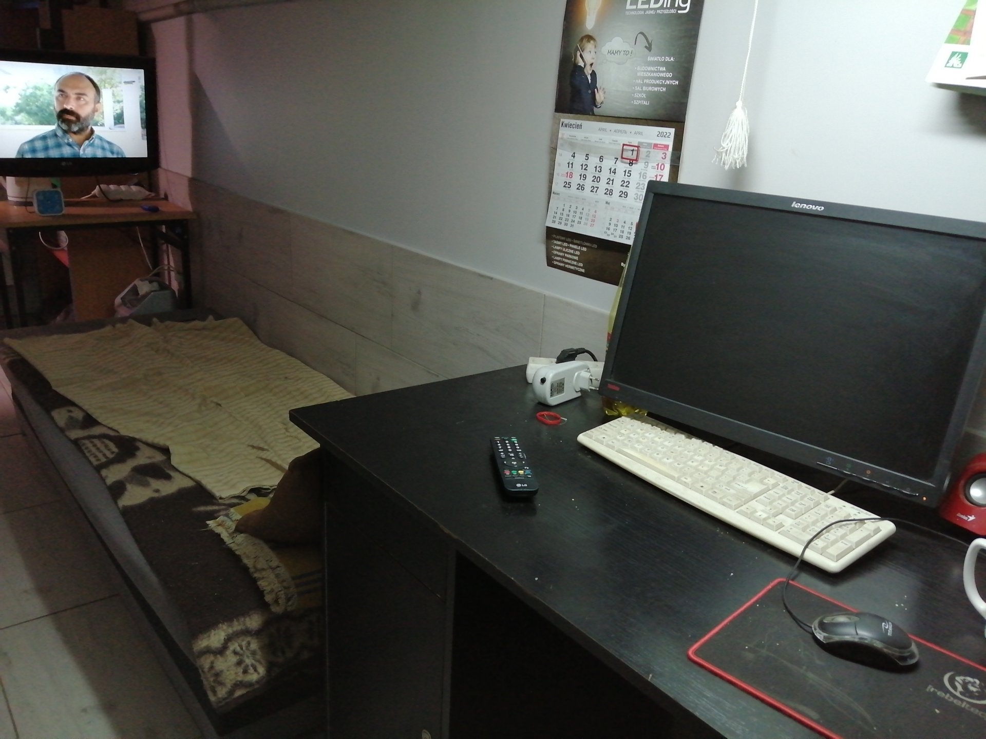 Łóźko, telewizor, komputer, czasem wstac coś grzebnąć.