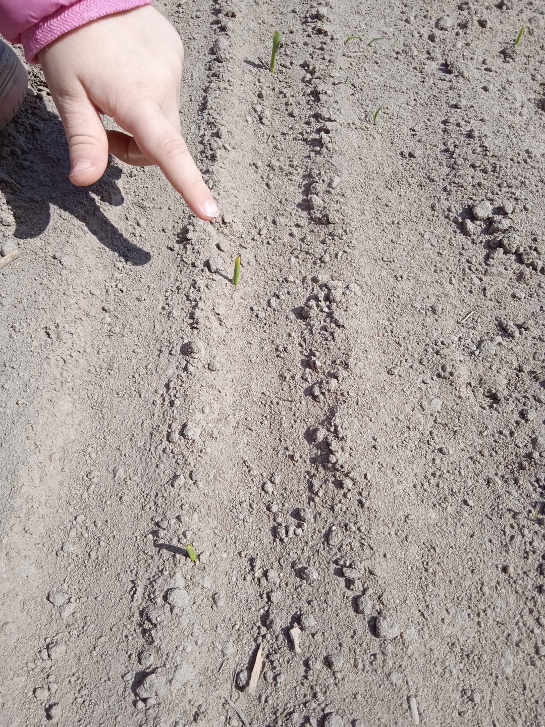 Kukurydza 8 dzień po siewie.