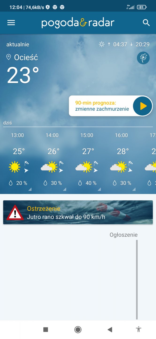 Dostałem ostrzeżenie na jutro rano 🙄