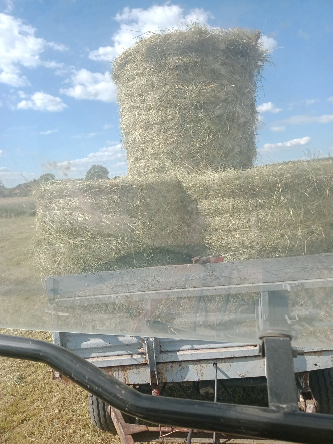 Kuźwa stało się ostatnie bele z pierwszego pokosu siana dla cielaków  na przyczepie 😉