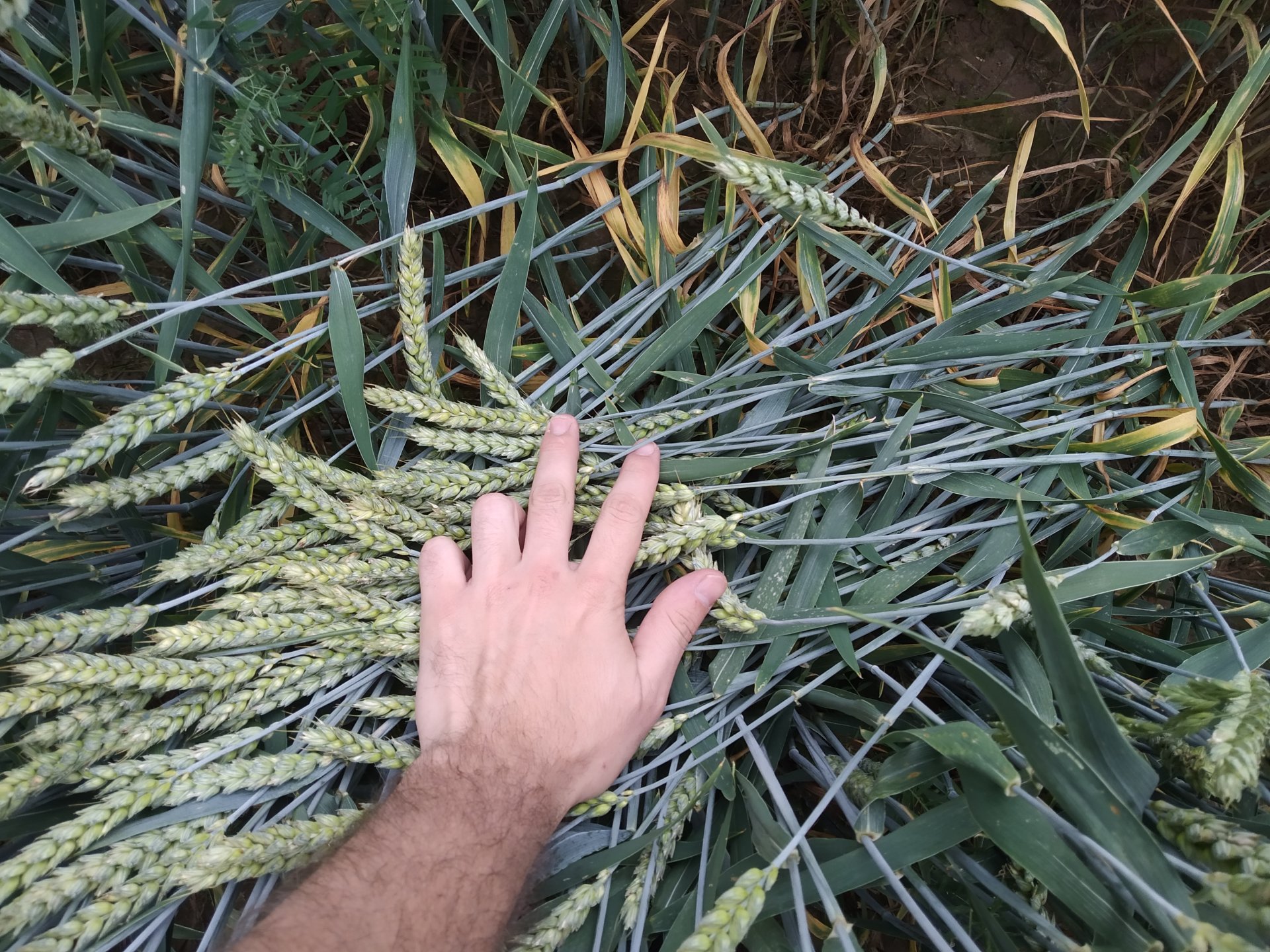 W poniedziałek pszenica tutaj była już z liśćmi zwiniętymi w rulon. Troszkę odżyła po tych 30l wody wczoraj i dzisiaj, ciekawe czy jeszcze coś lepiej ziarno naleje.