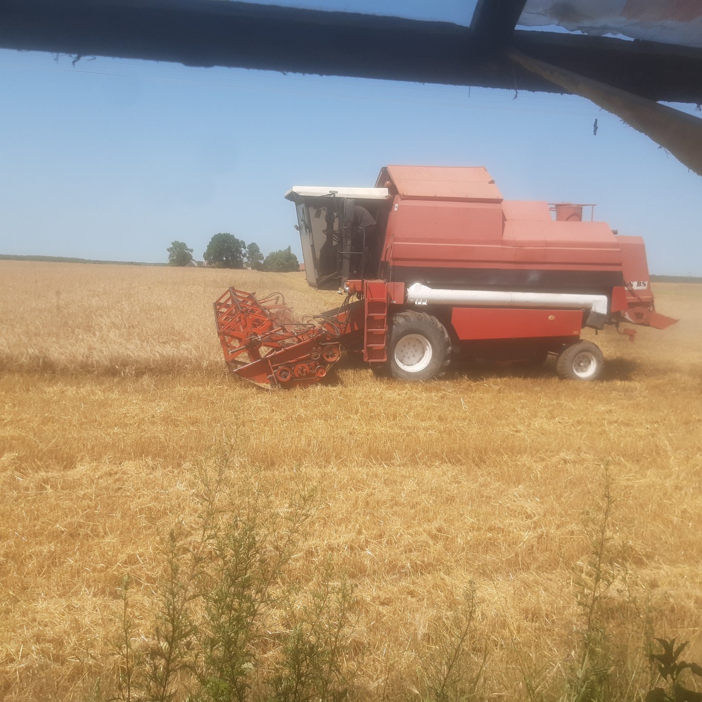 Jutro ma podjechać i ciapnąć żyto, bo już się chce osypać. Zaś w pszenicy na dołkach jeszcze trochę zielonej słomy się nawet trafia. Pszenżyto się nie chce z kłosa wymłócić chociaż ziarnko suche.