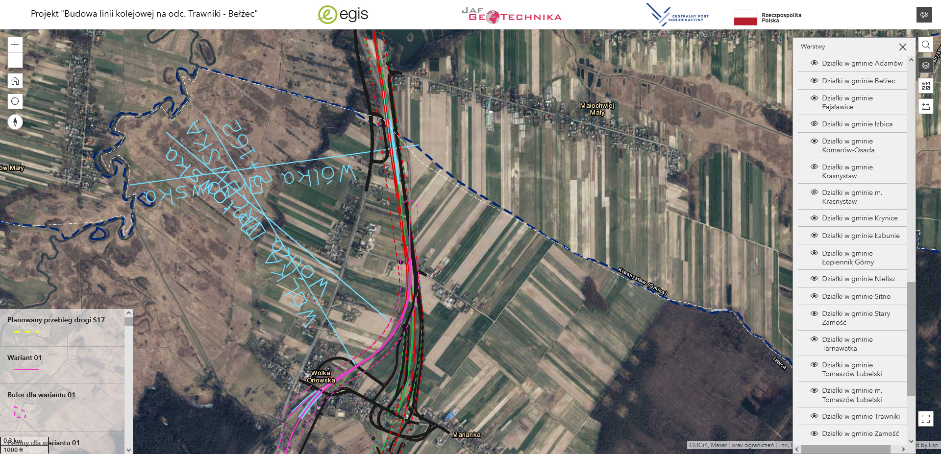u mnie na planach tak właśnie jest - mają budowac linię CPK i wzdłuż masę dróg serwisowych, jakieś parkingi techniczne itp