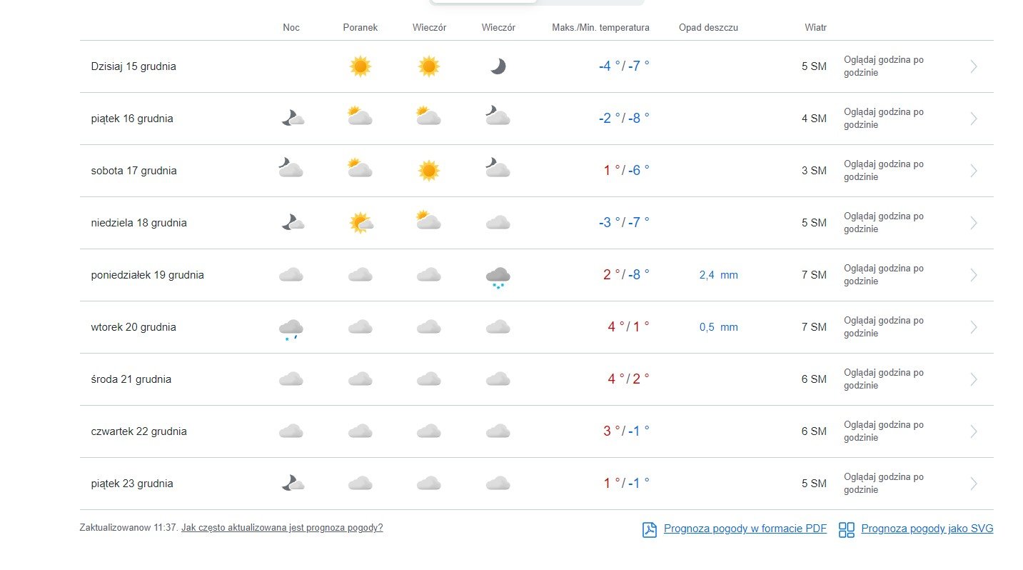 U mnie od soboty do wtorku od -15 do -20 nadają.