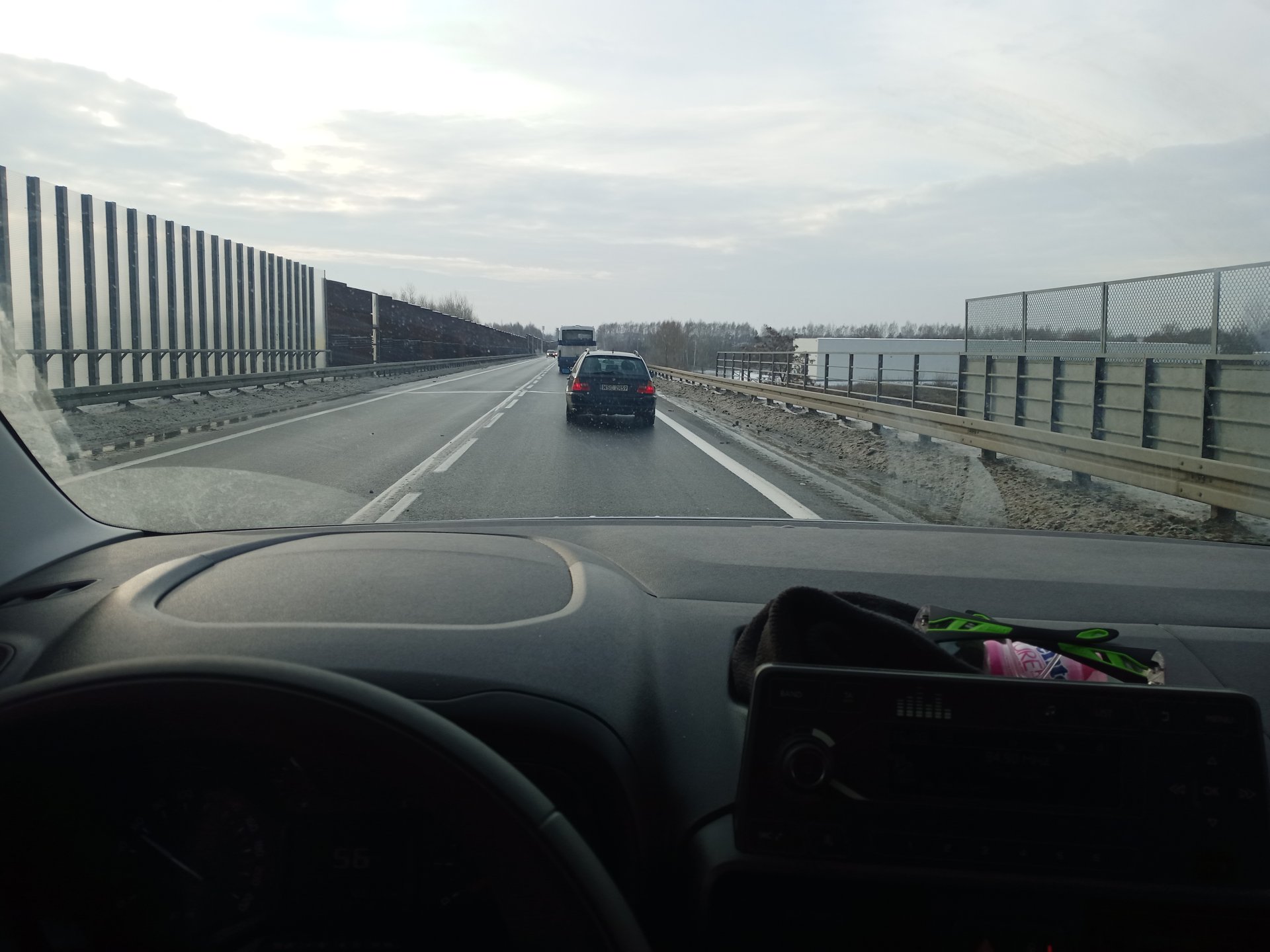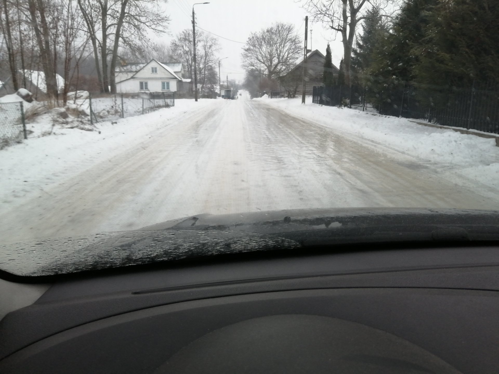 No niewiele się u mnie zmieniło od 7:00. Równie ślisko było jak do pracy jechałem. Choć kumpel stał akurat koło siebie to mówił, że ja pierwszy odważny dzisiaj po tej drodze jechałem. 😉