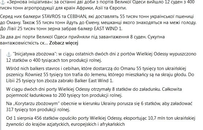 a teraz nie eksportuje?   wala morzem i jeszcze do nas.  jeszcze odechce sie wam tej ukrainy.  wojna zaraz sie skonczy a obok siebie bedziemy mieli kraj pare razy lepiej wyposazony niz my.