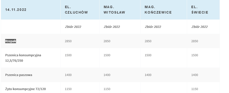 Rzepak [-50 zł], pszenica konsp.[-30], pszenica pasz [-50zł]