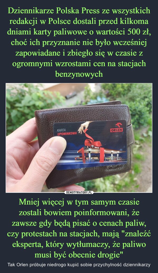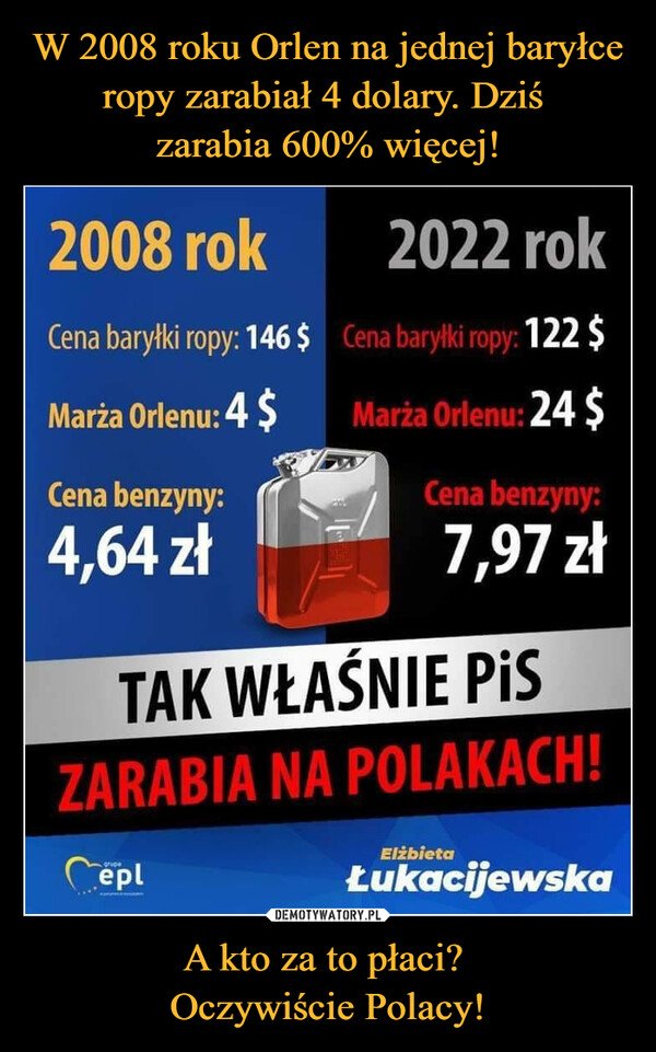 Przecież masz jak wół napisane ze to nie my to finansujemy więc bajeczka o tym że Orlen musi marżami na to zarobić -odpada.