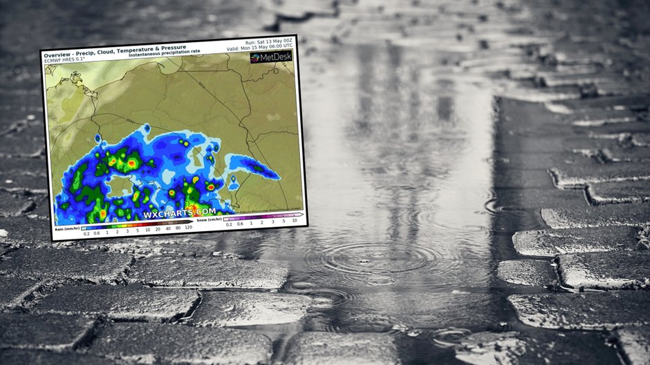 Z południa do Polski pędzi wilgotny front z deszczem (mapa: wxcharts.com)