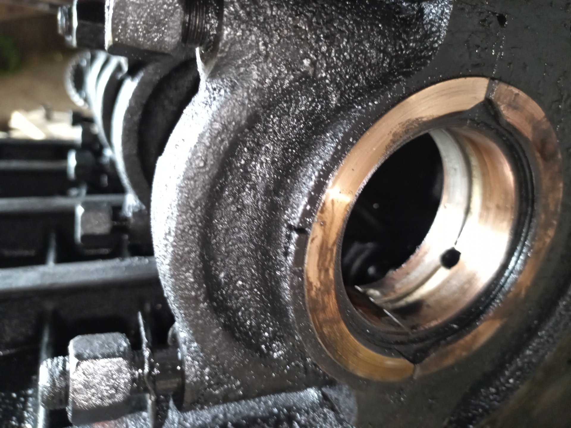 Szczęście, że panewki nie obróciło to choć korba dobra. Ale panewa nie wygląda na mocno zatartą tak żeby urwało wał. Pierścień górny