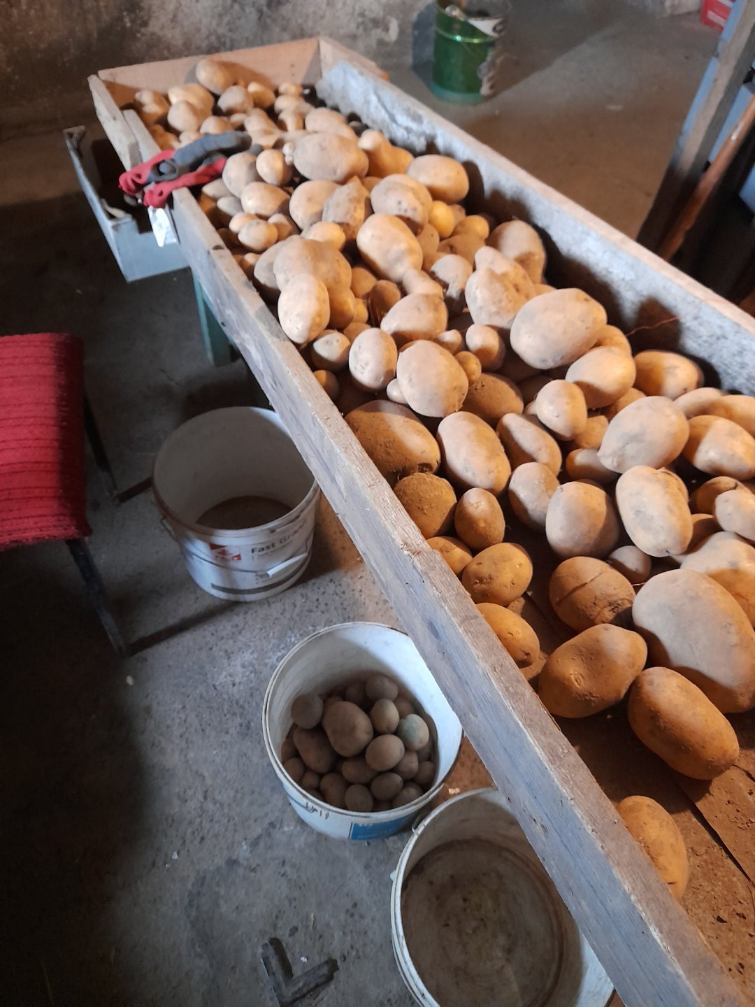 Przebierać w polu za długo schodzi. A tak to sam dopilnuję i każdego do ręki wezmę. Do jednego wiaderka dobre, do drugiego brzydkie, zielone, drobniejsze, do trzeciego najdrobniejsze, nacięte, odcięte z nadgnitków do szybkiego zużycia. 100-120kg na godzinę w zależności od tego czy dużo drobnych bo nawet te wielkości paznokcia czy mniejsze się zbiera.