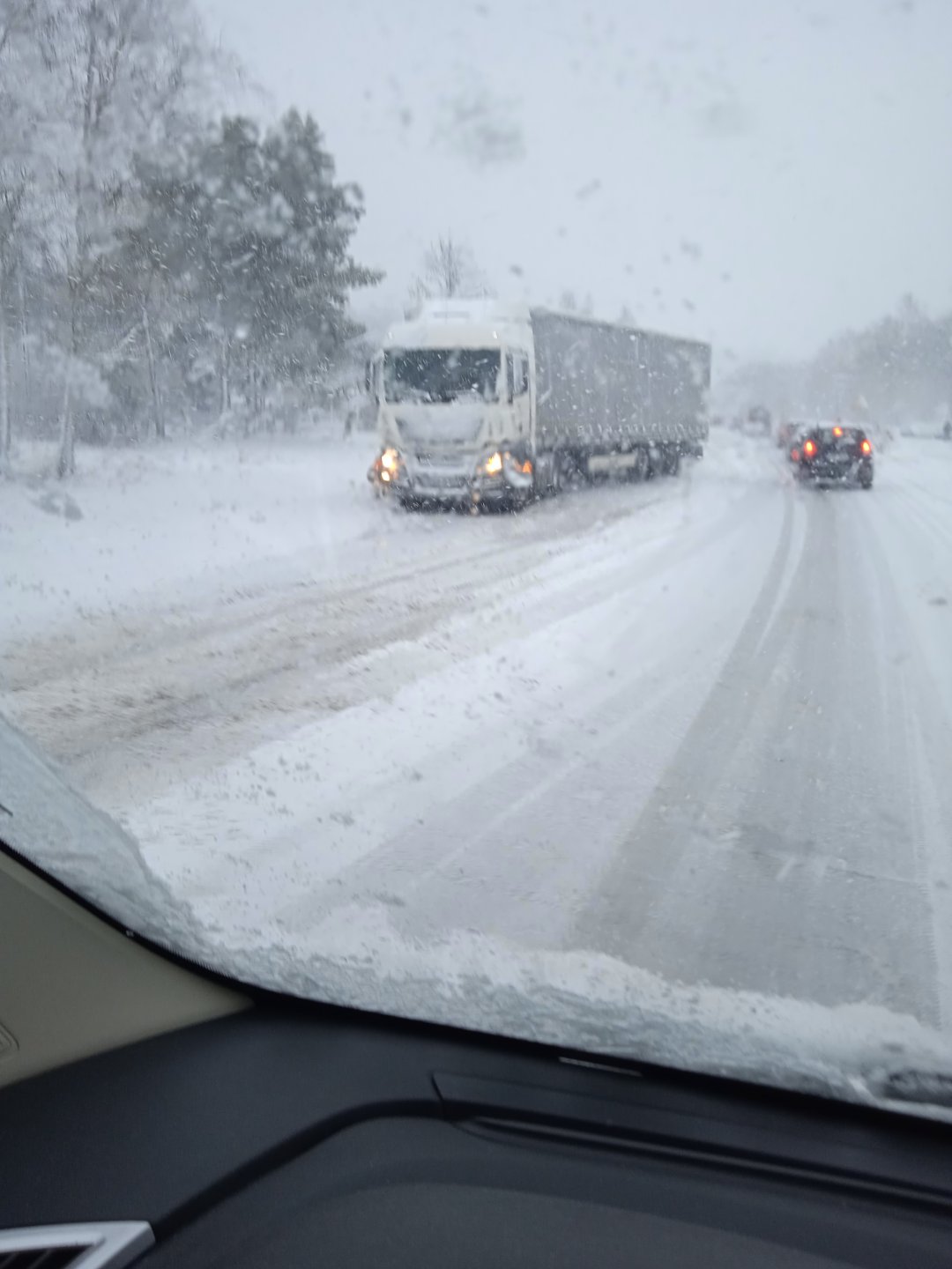 Pod górkę na szkle to i zimówki nie pomogą. Tu chłopak też się morduje wjechać nie może. Korek 11km.