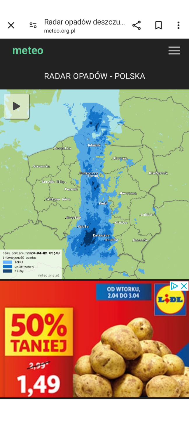Radary pokazują od Gdańska do góry całym pasem deszcz pada