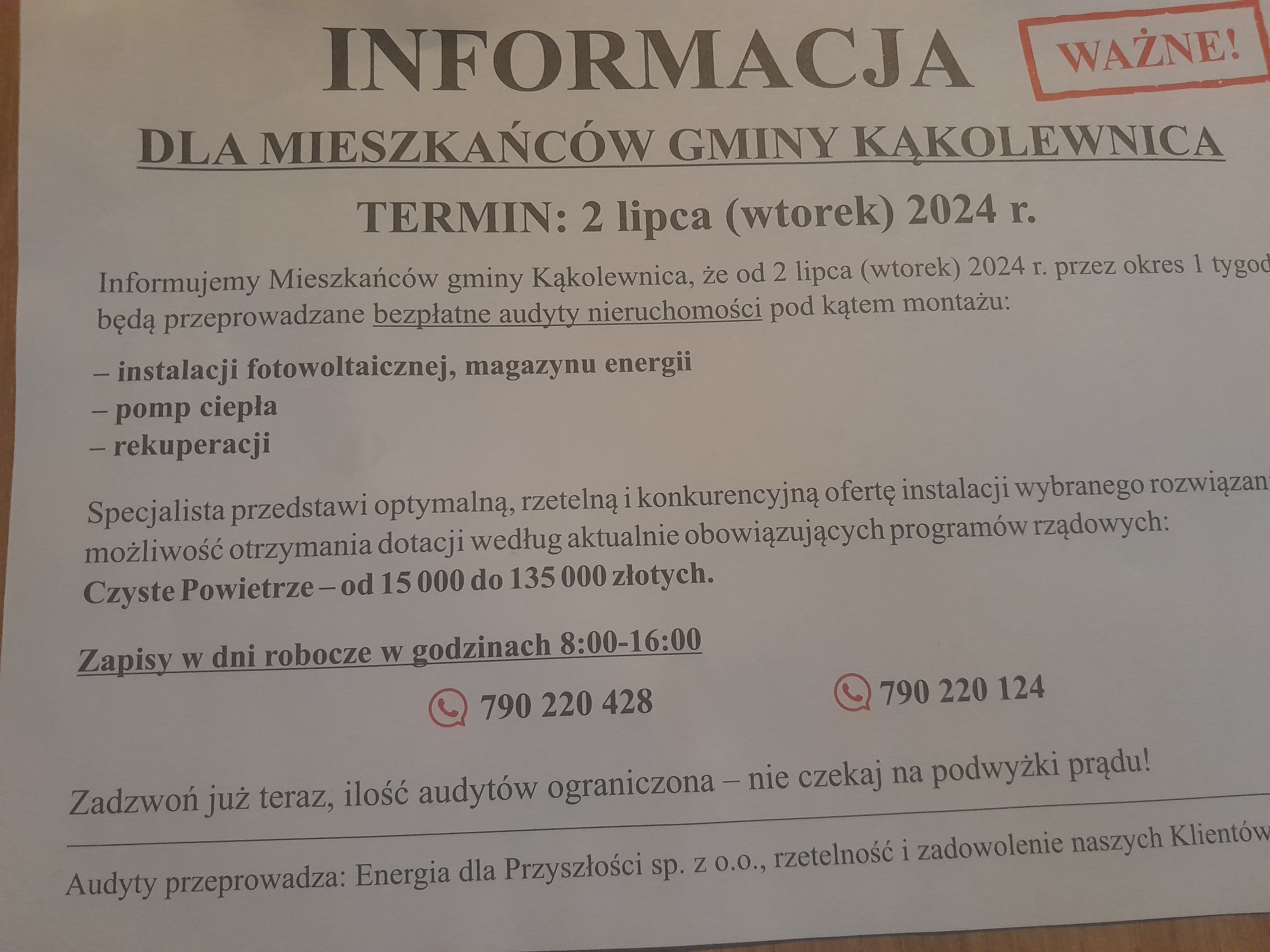 Do nas już druga firma przyjechała z ofertą
