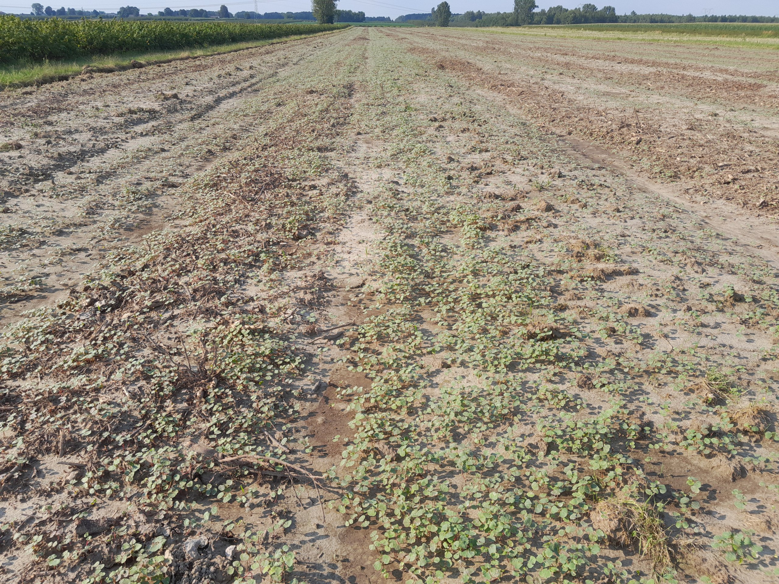 Sąsiad młócił i zadem zawinął po mojej zlikwidowanej i zaoranej porzeczce. Matko boska, tam jest brak miejsca dla niego. Ja zasiałem grykę a rzepak ją żywcem zadziobał. Po rżysku też rzeżucha.