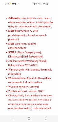 Mieciu, brat wrócił późno. Było ok 200 ciągników różnych. Zaczęli w jednym mieście i przejechali do drugiego ponad 15km. Nie gadali za dużo bo nie mieli czasu. Policja elegancko. Nawet mojemu bratu pogrozili palcem z uśmiechem, bo gadał przez telefon. Fotki ze zgrupowania i postulatów, z których ostatni się dla mnie bardzo podoba
