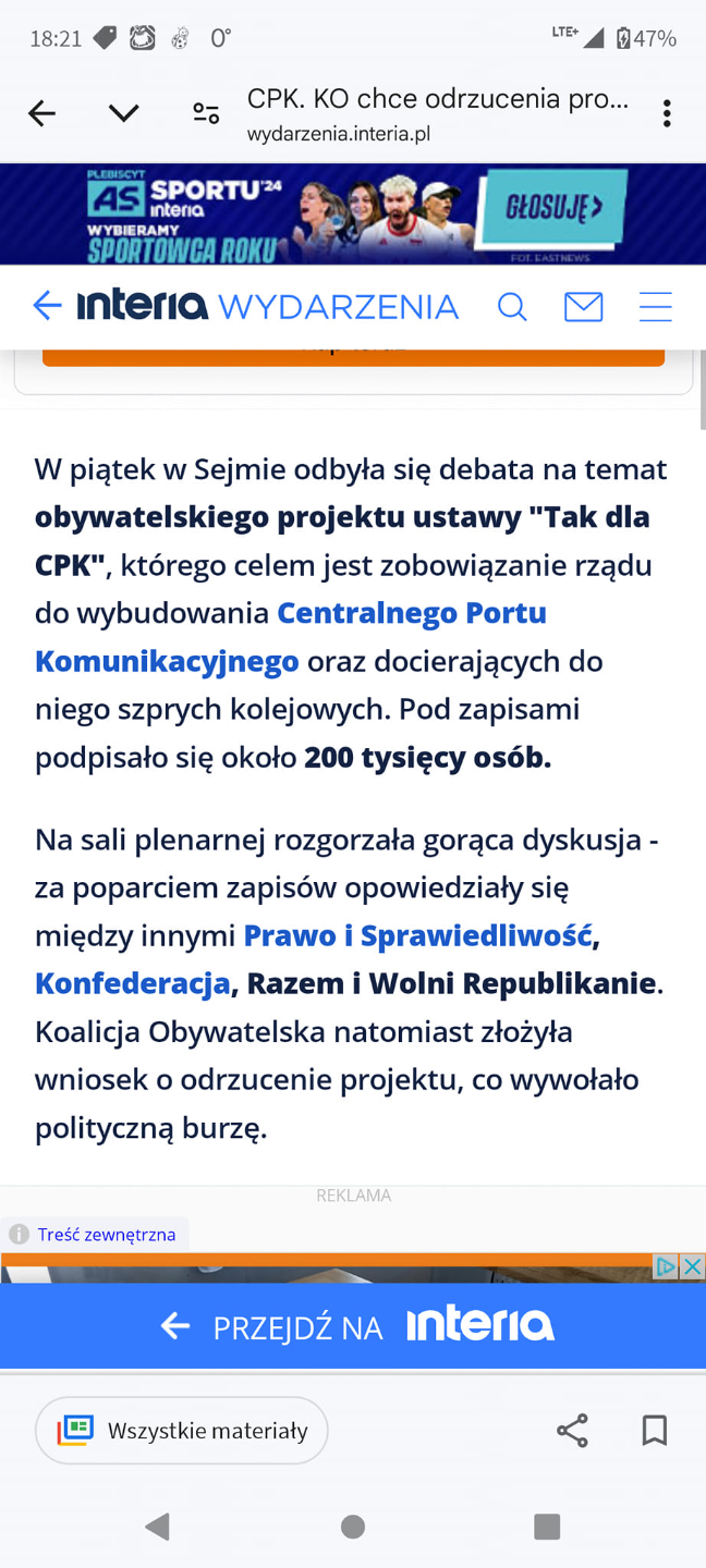 Platforma Obywatelska złożyła wniosek o odrzucenie obywatelskiego projektu TakDla_CPK w pierwszym czytaniu.
