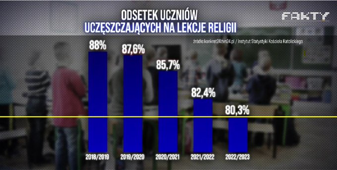 W średnich to jest około 60% w skali kraju. I za razem o 60% za dużo, niech sobie robią lekcje religii w salkach parafialnych a nie w szkołach.