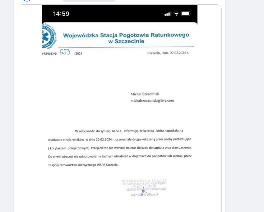 Temu fałszuje bo widziałem jak ratownik z pogotowia apelował by na strajkach ustawiać ciągniki tak by służby ratunkowe mogły szybko przejechać.