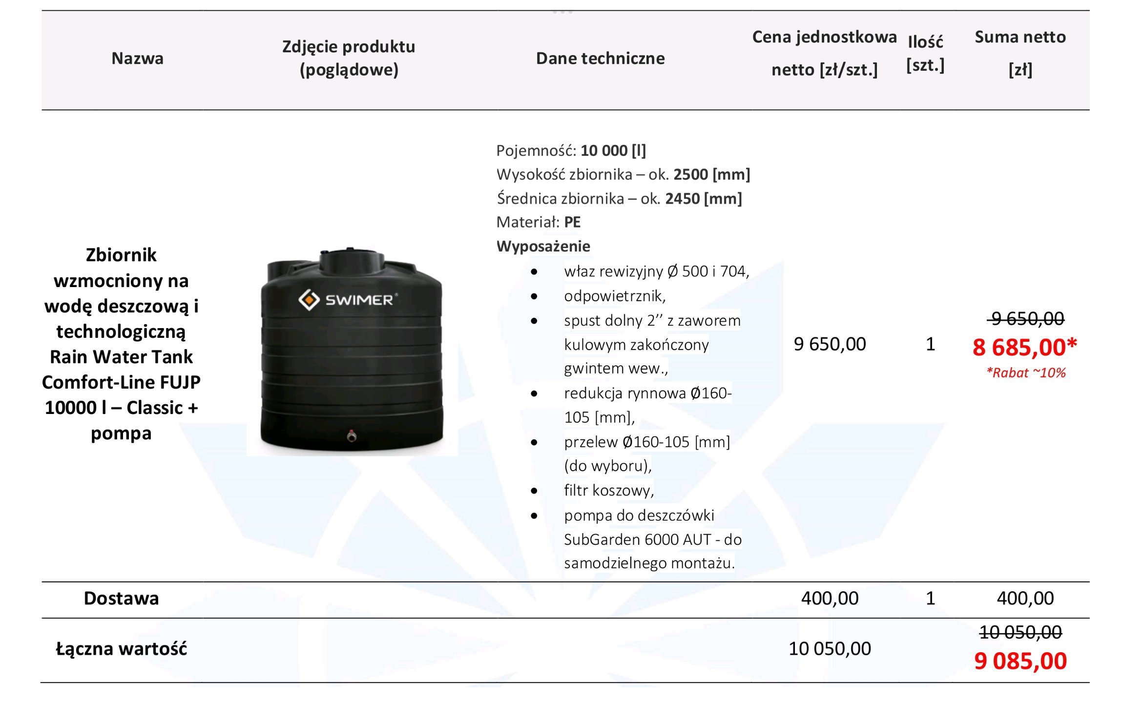 Swimer 10m3 5830 netto, mam taką ofertę