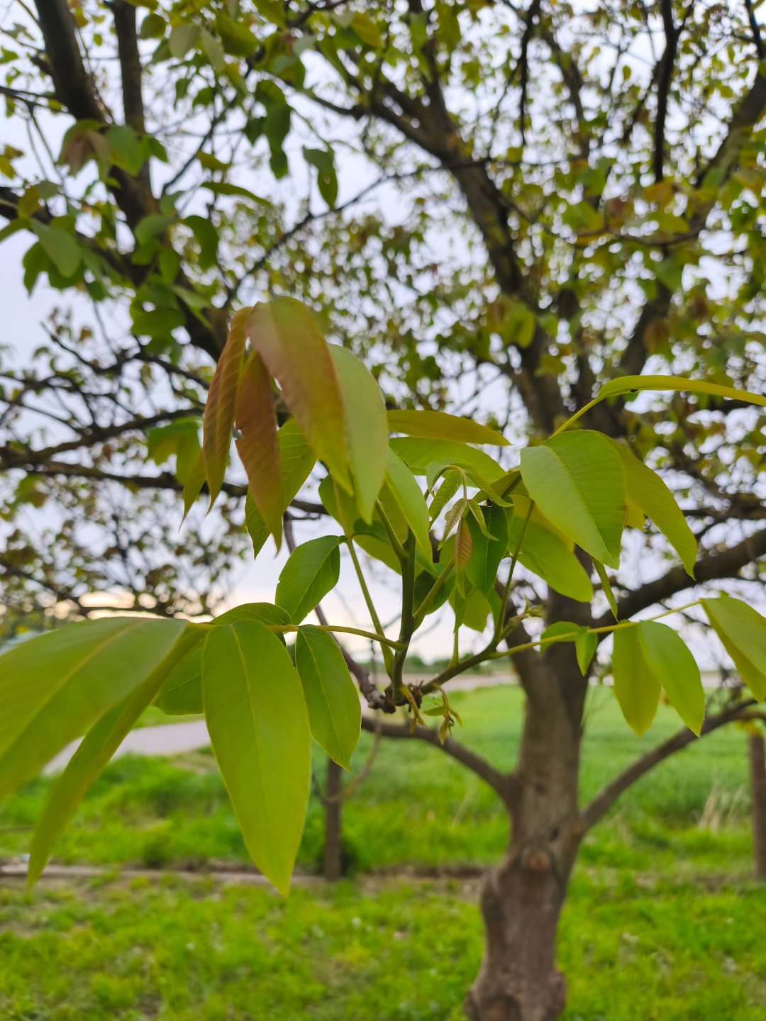 Mnie jakoś szczęśliwie omija dzięki życzeniom przyjaciela Ryszarda. Raz mrozi na północy, raz na południu, a u mnie jakoś nie przekracza tych -2. A tyle to włóknina spokojnie ochroni truskawki. Bób też do tych -4 -5 póki nie kwitnie wytrzyma. Na orzechu włoskim liście wyglądają tak.