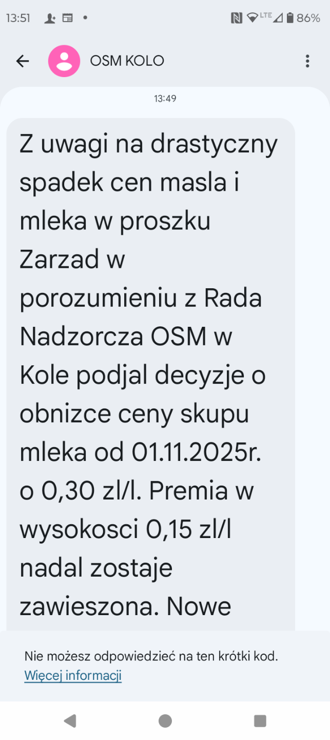 Ja dziś w sklepie żadnej obniżki cen mleka ani o 30 groszy, ani nawet o 10 na litrze nie zauważyłem, nawet promocji żadnej na mleko nie było
