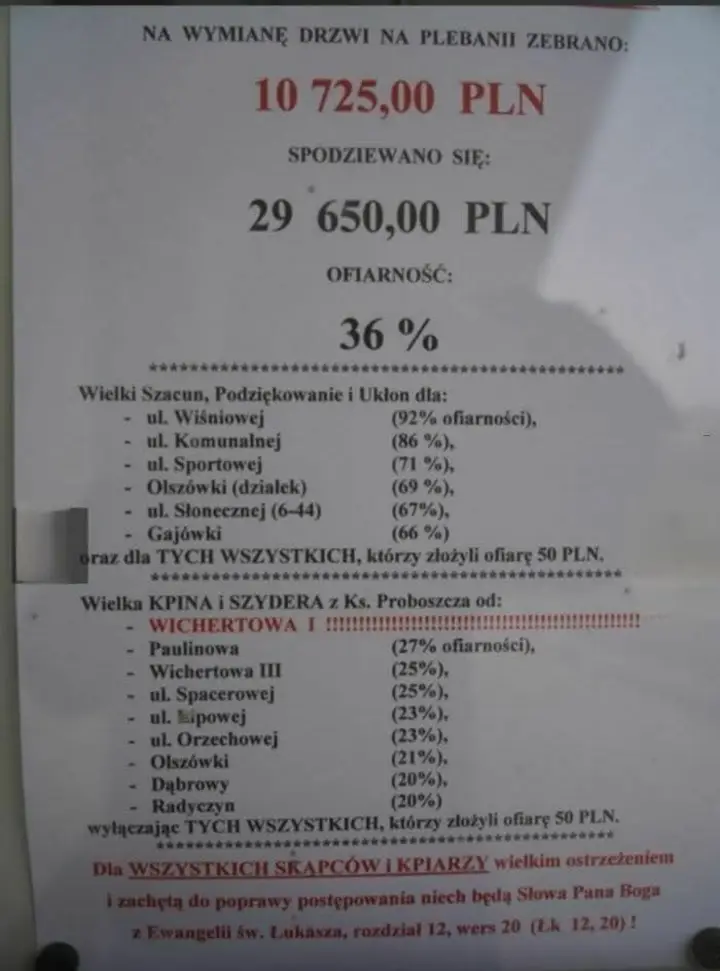 Ty się ciesz , bo u mnie kiedyś wyczytywał kto ile dał po nazwiskach