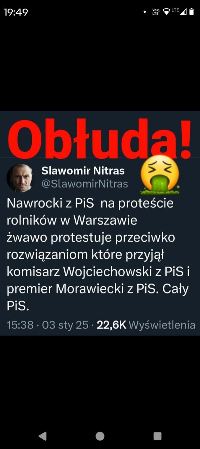 Konfa to cyrkowcy . Ich problem jest taki, ze nie potrafią zdobyć więcej jak 10 % poparcia bo nie wielu naiwnych im ufa. A rolnicy to już w szczególności. Gdybyśmy wrócili do prawdziwych poglądów ludzi z konfy to rolnik nie powinien mieć żadnych dopłat nic. Jak mawiał JKM nie opłaca ci się nie rób. I aż śmiech bierze jak rolnicy wierzą w konfę. Ale widać taki los polskiego rolnika wierzy tym co mu jak najwięcej pierdół nawciskają apotem jest przez nich sromotnie oszukany.