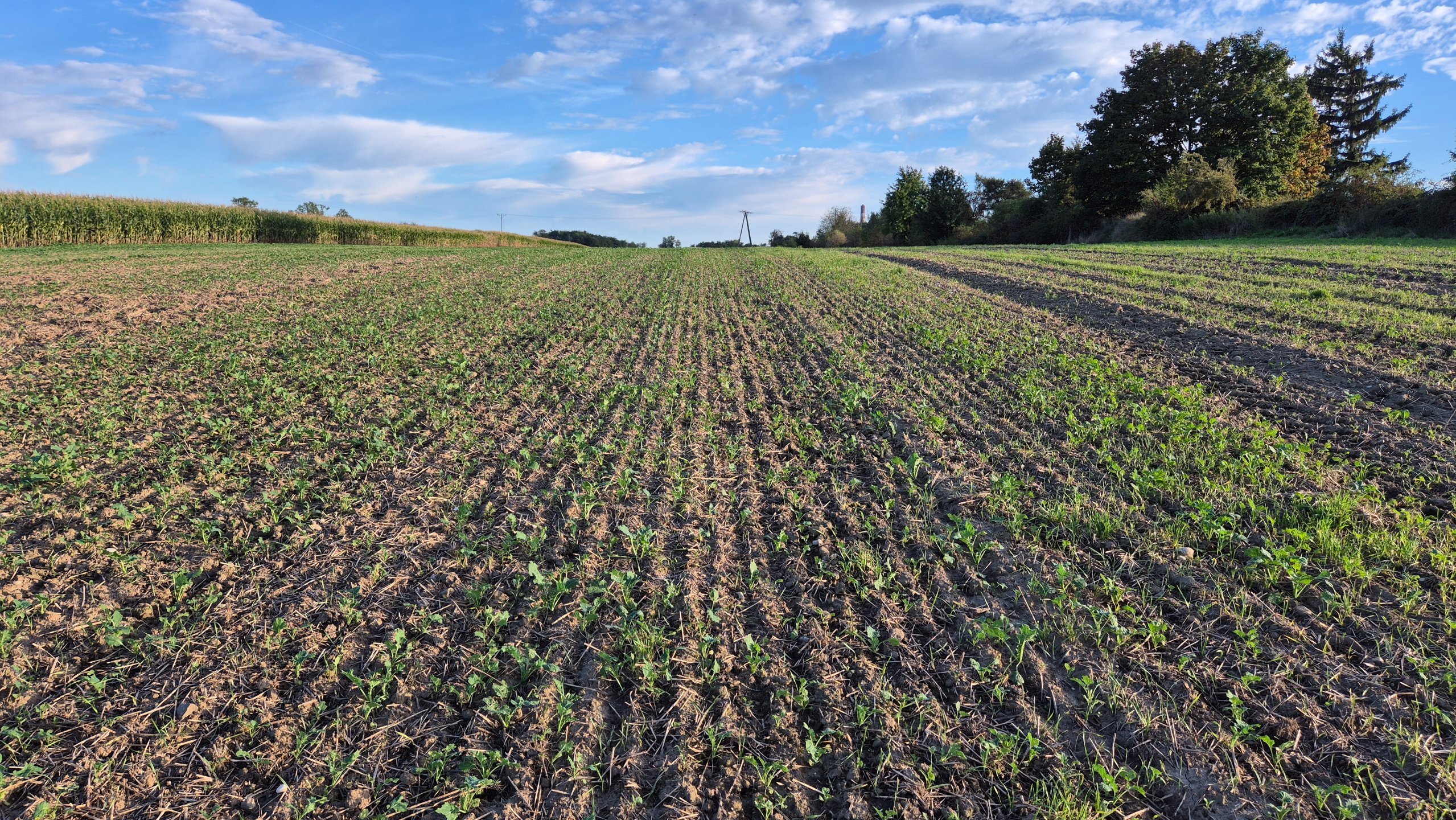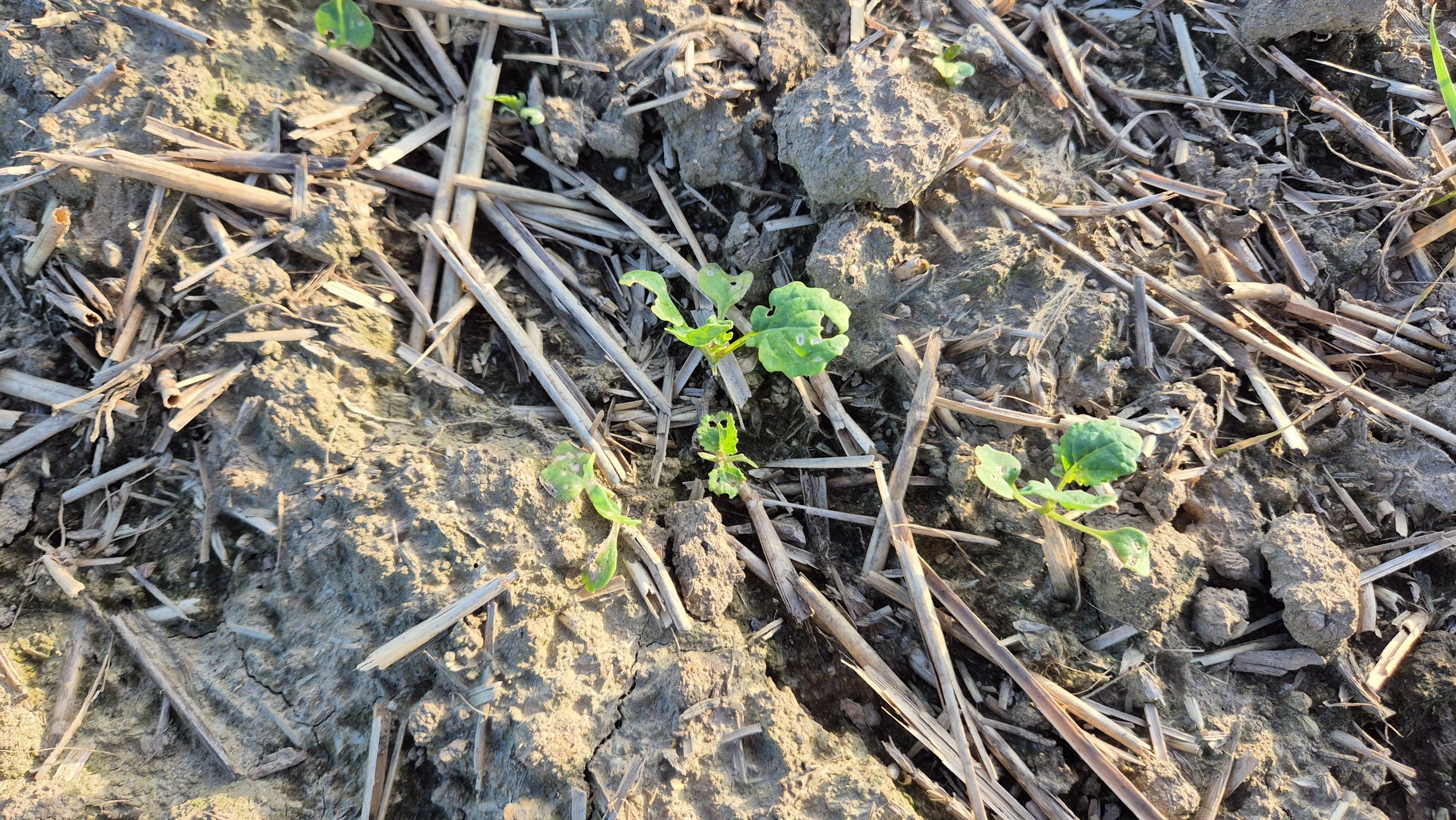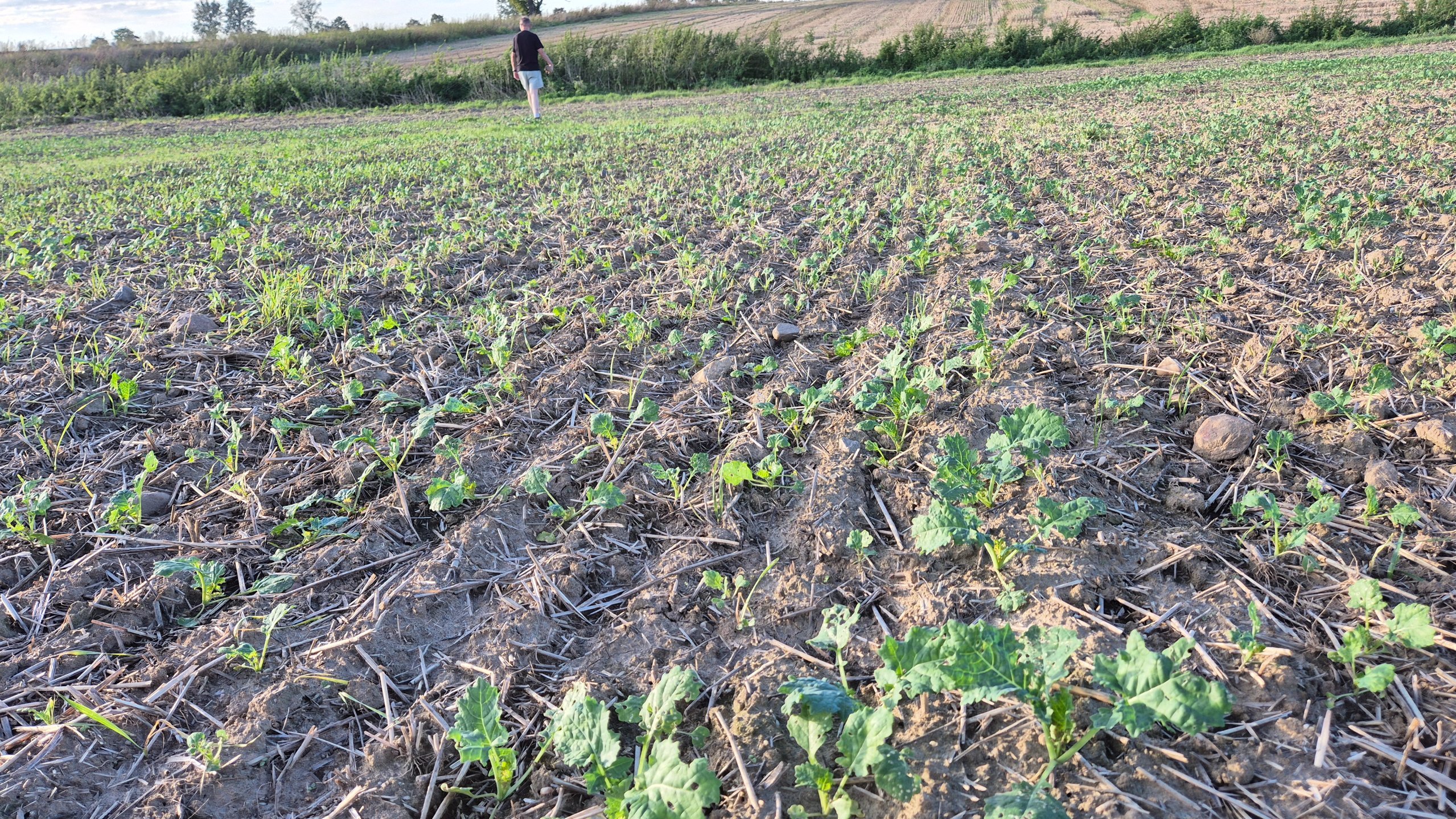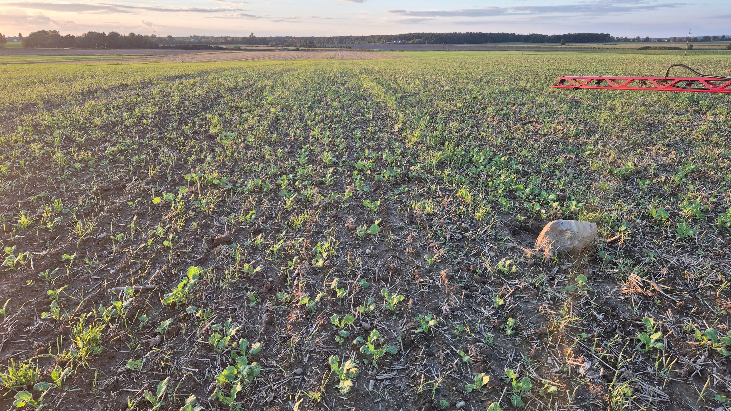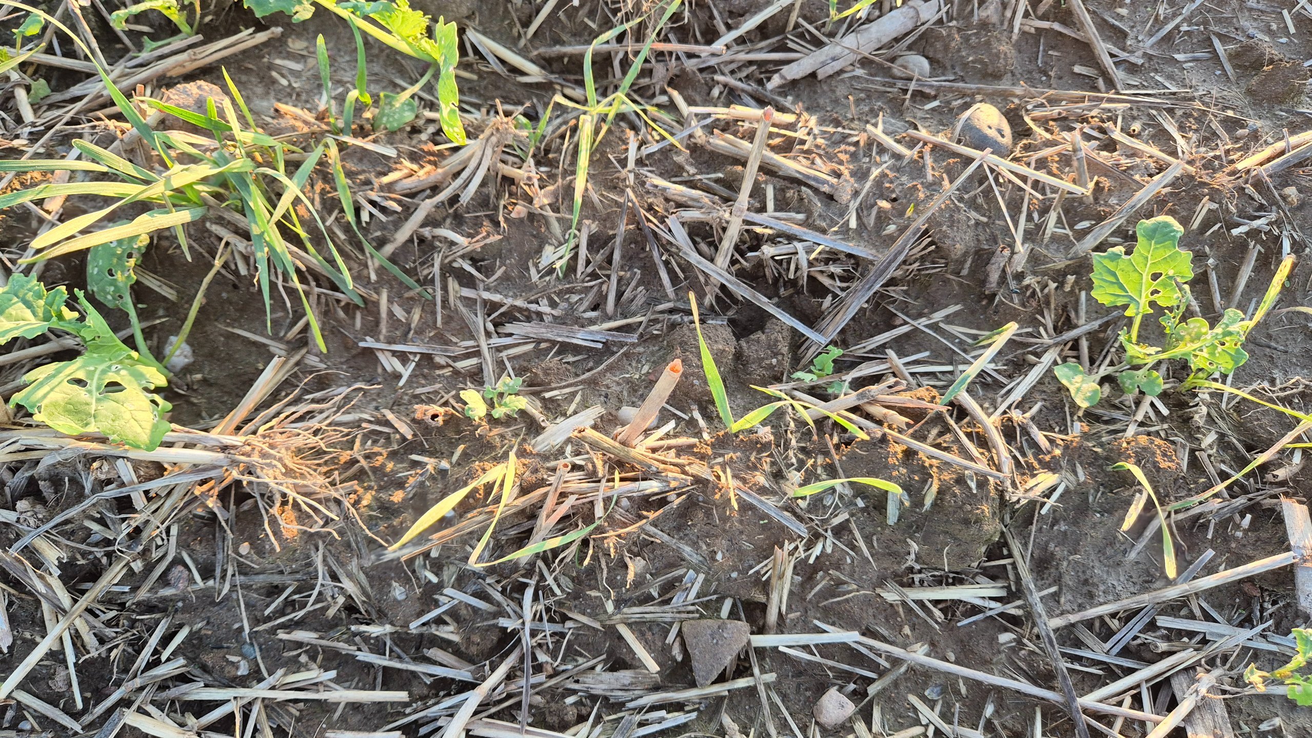 Faktycznie różnica jest spora. U mnie podczas siewu za dużo wilgoci też nie było (orka na raz po pszenicy) ale wystarczyło na w miarę równe wschody. Mały opad był 3 dni po siewie. Dopiero teraz we wrześniu wody dopadało. Widać też u Ciebie strasznie pogryziony przez robactwo.