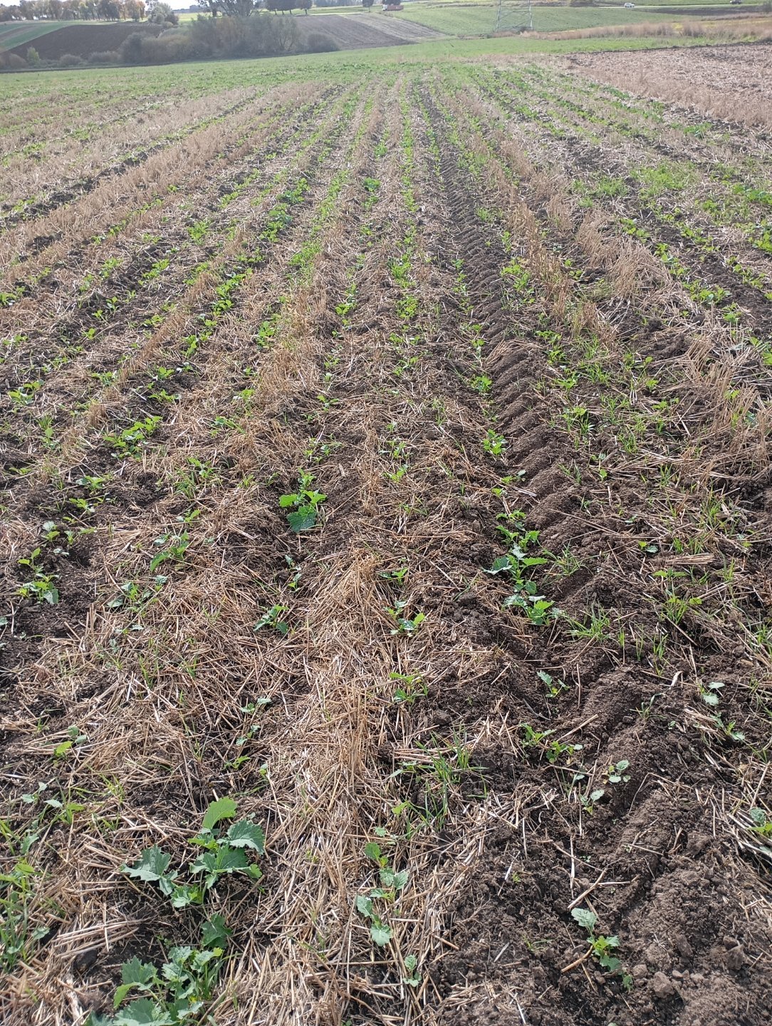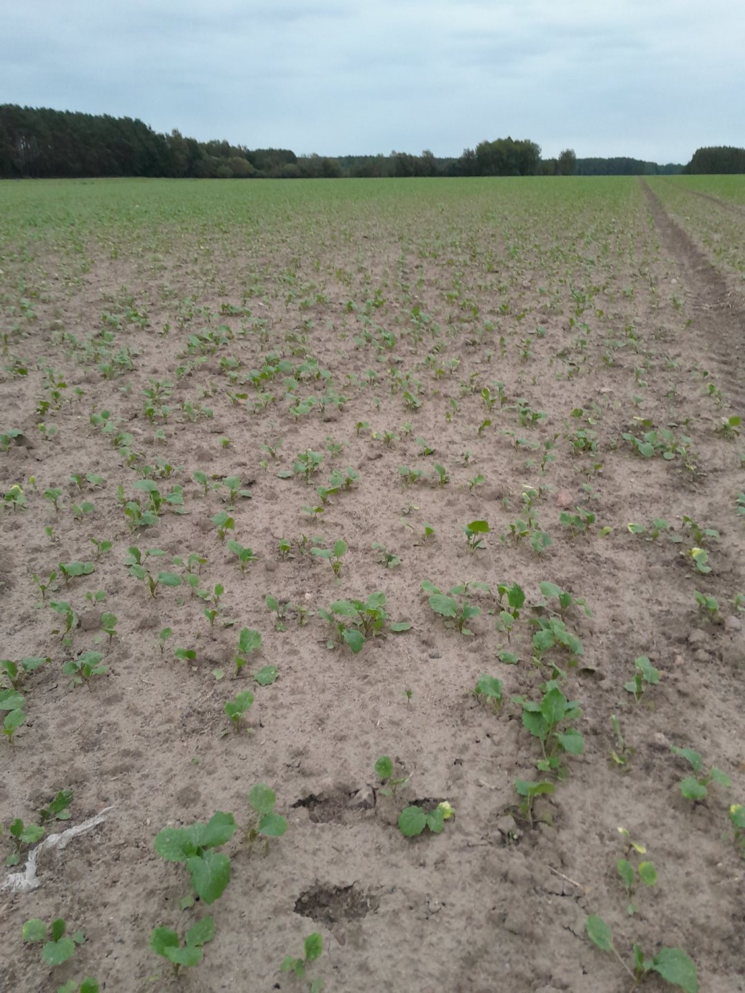 W drugą stronę zrobione ale na całym kawałku taki rzepak był mniej więcej. Na ta chwile ten mały ma 3/4 liście a ten duży z 8/9