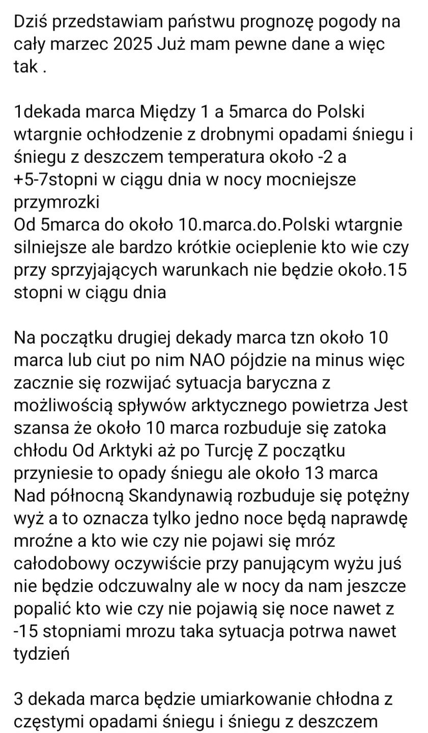 Tutaj masz najbardziej prawdopodobny scenariusz pogodowy na marzec