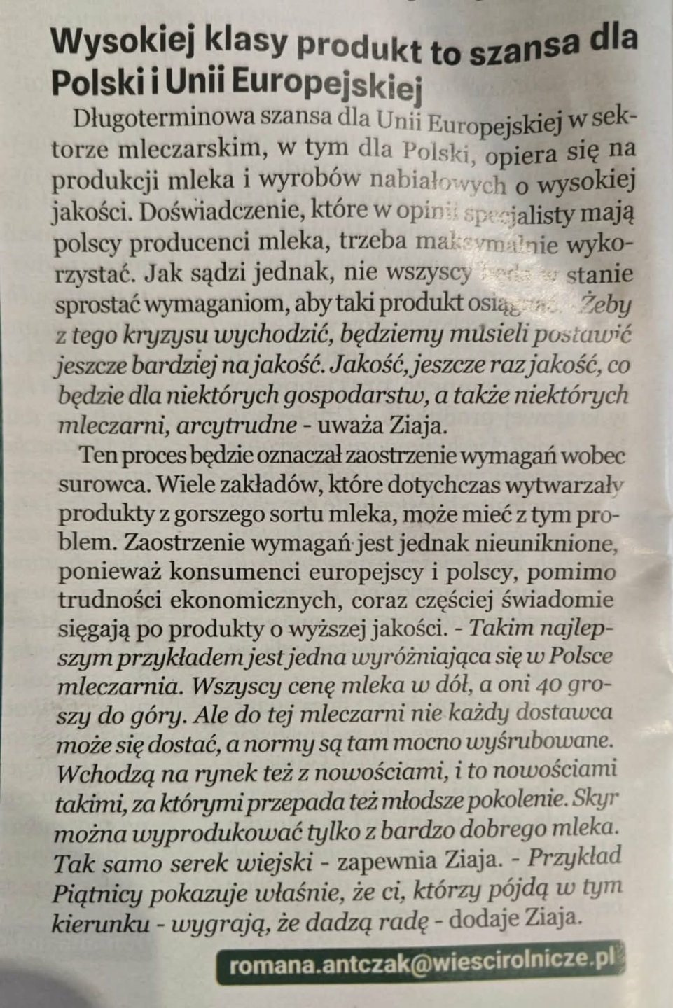 Nie ma co się oszukiwać, jeżeli mleczarnia za grudzień płaci poniżej 1,5 zł na litr. To jest duże prawdopodobieństwo, że nie pilnują jakości mleka. Dobre produkty bronią się same.