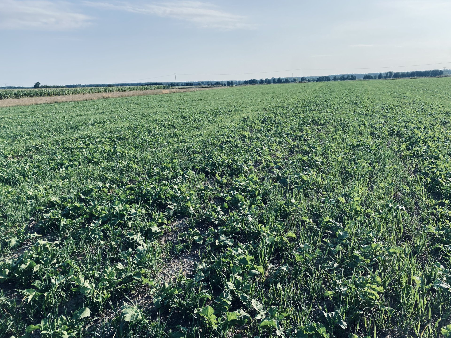 Tu mój poplon siany koniec lipca owies 30 kg, rzodkiew oleista 2,5 kg, seradela 7 kg, facelia 1 kg. Po żniwach wapno 3spacer.png t/ha, głębosz 25-32 cm, agregat podorywkowy z podcinaczami i siewnikiem do poplonów na około 5-8 cm