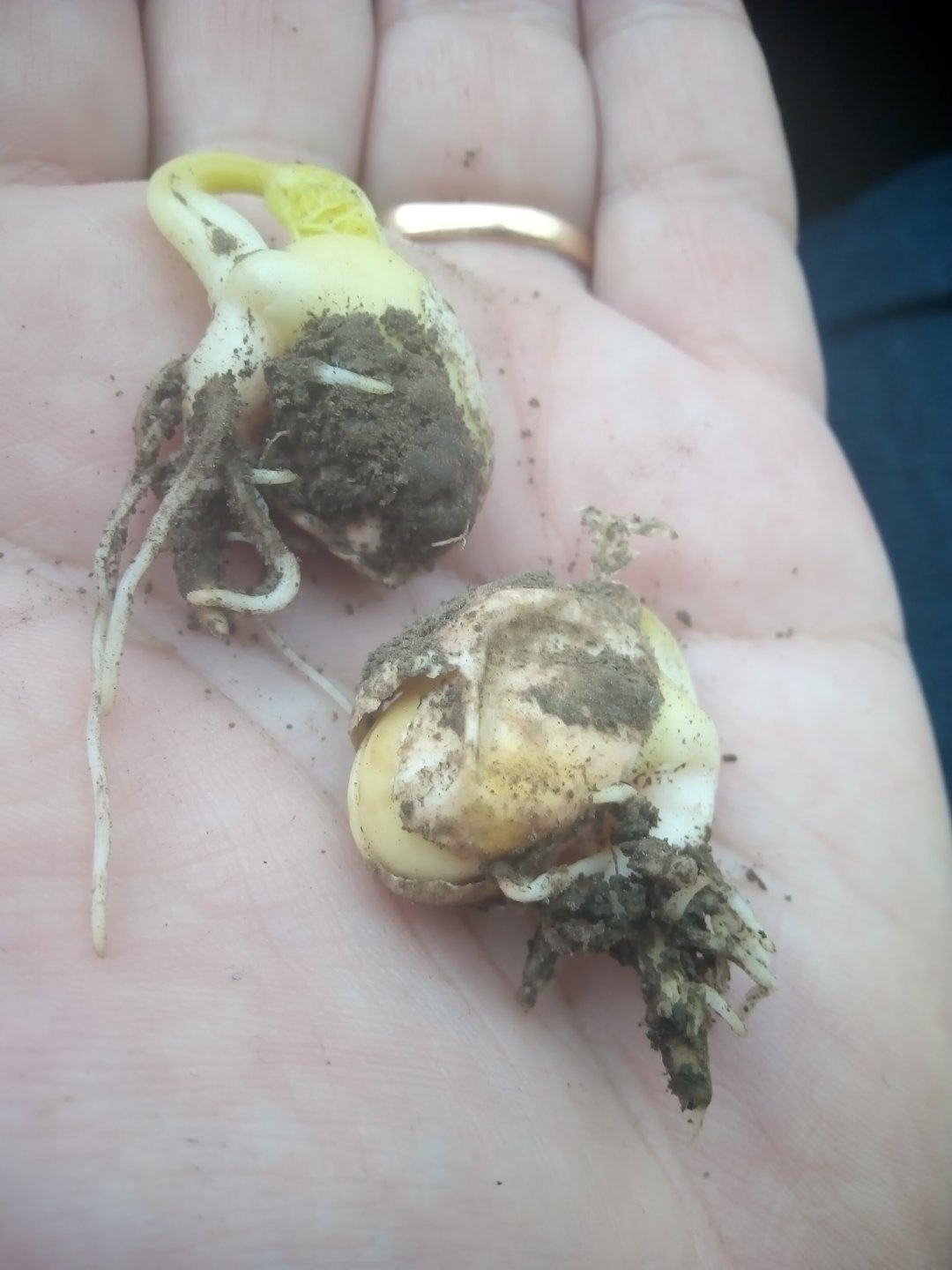 Dzisiaj 5 maja (7 dni od siewu) odkopywałem nasiona w paru miejscach i zupełnie nie widać po nich żadnego kiełkowania . We wierzchniej warstwie redliny gdzie znajdują się nasiona jest na tą chwilę dość sucho.