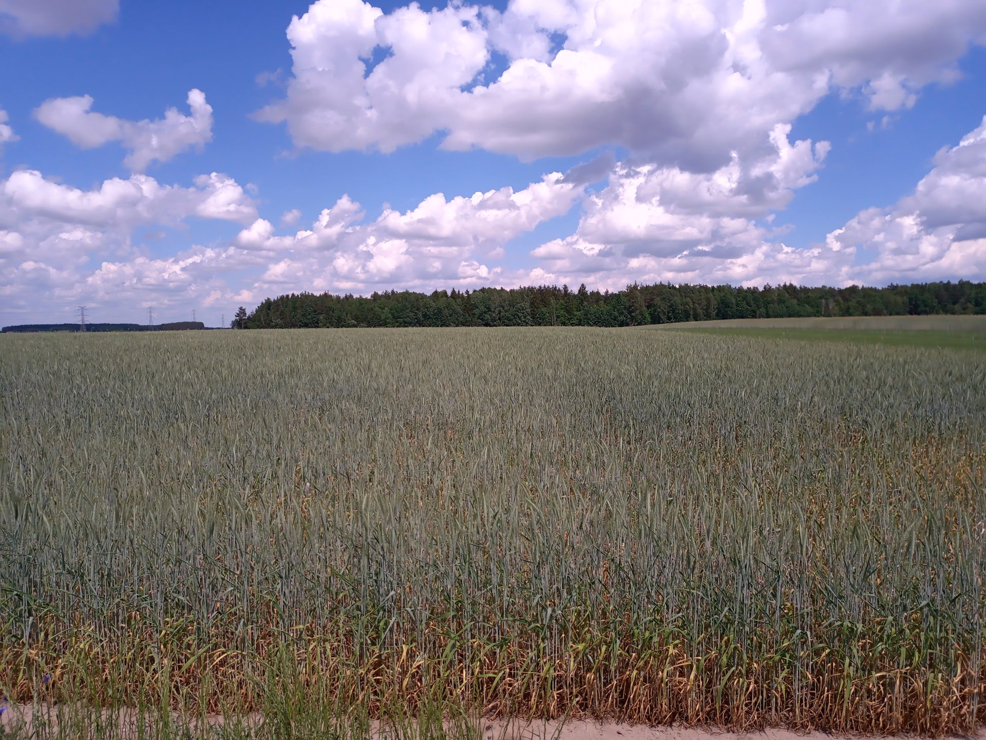 Eee.. coś śię zieleni jeszcze. Mam nadzieję, że to g...o u mnie uschło na tyle, że się nie odmłodzi. Na fragmentach działek w sumie 10ha będzie tego z hektar. Na reszcie jeszcze nie jest tragicznie - i skrzypionkę oprysknęło, bo właśnie właśnie wlało 10l.