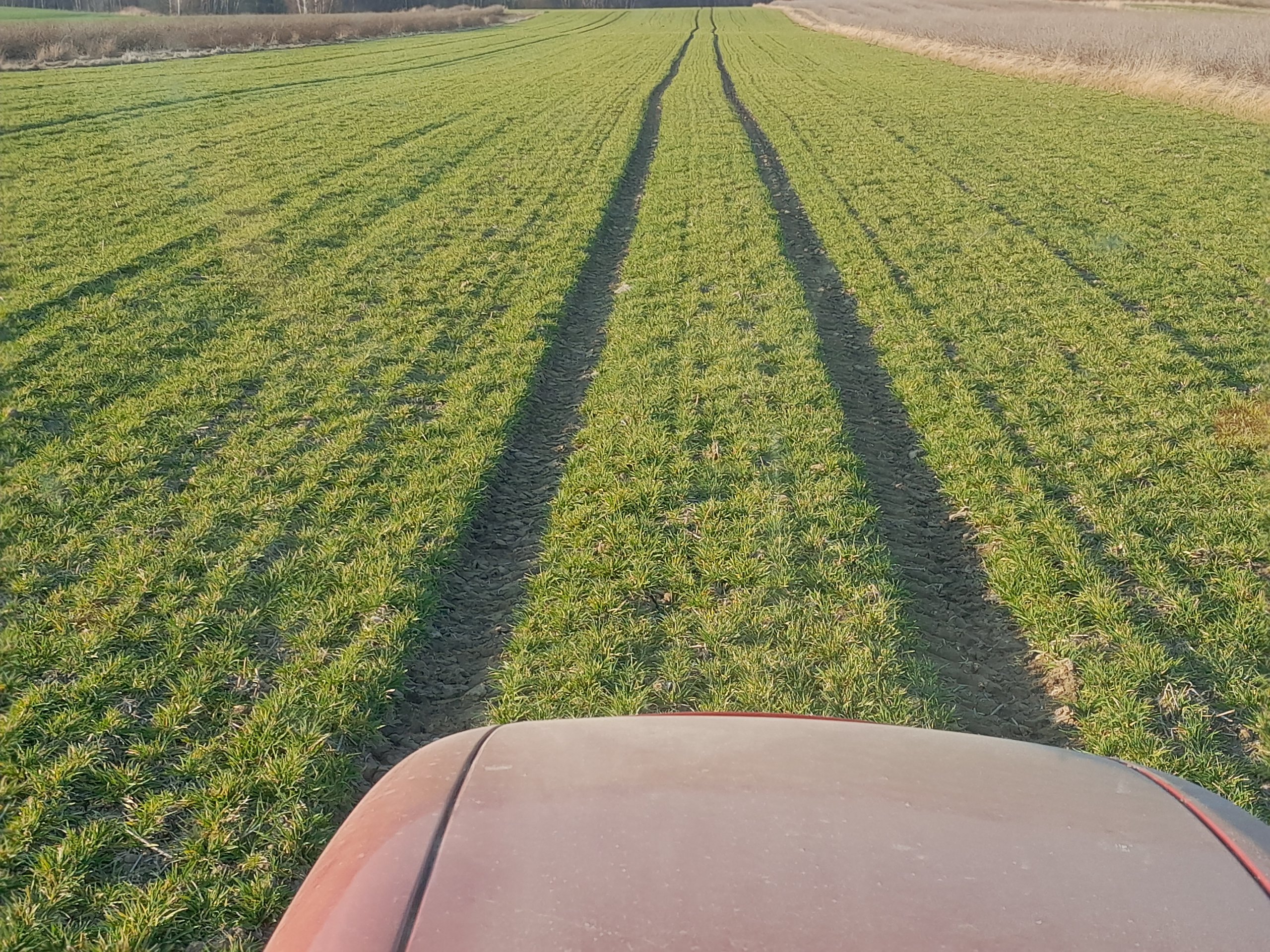 Ciekawe jaki wpływ na tak szybki wzrost miał podany jesienią azot, u mnie jęczmień jeszcze cytrynowy, ale na części pola po grochu widać już więcej koloru zielonego.