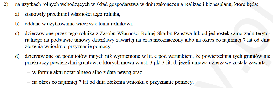 Tak, ale rozporządzenie jest nieprecyzyjne. Dzierżawy aby się liczyły muszą być zawarte na okres min. 7 lat od dnia złożenia wniosku. Nie odpowiada to na pytanie czy dzierżawa zawarta po dniu złożenia wniosku gdzie okres jej trwania jest dłuższy niż termin 7 lat od dnia złożenia wniosku się liczy.