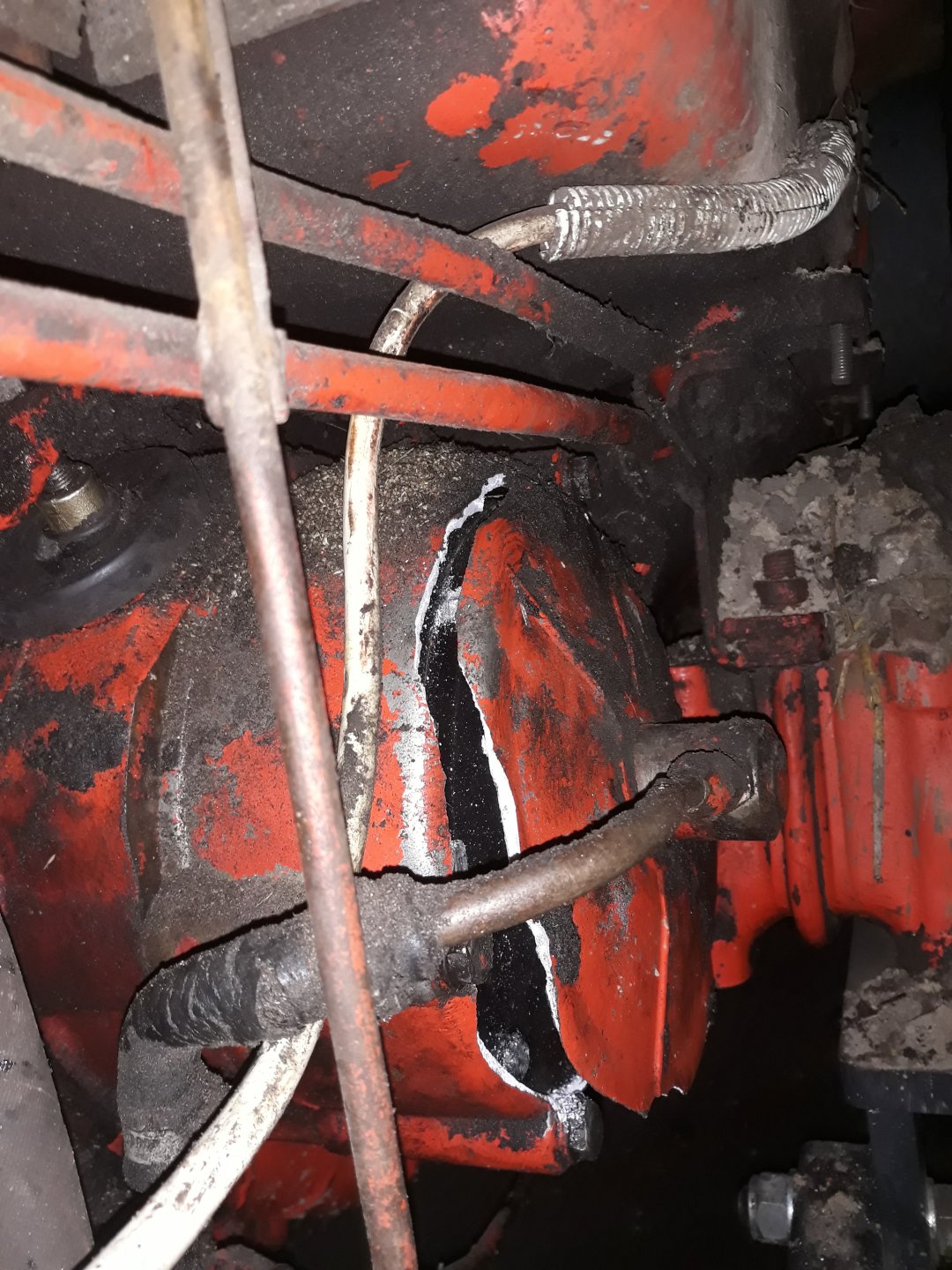 Co tu się stanęło 😮 Dodam tylko że niedawno robiłem hamulce nowe, uszczelniacze, tarcze, rozpieraki. Wszystko było dobrze, ładnie hamowało do dzisiaj gdy użyłem hamulcy usłyszałem lekki trzask po czym miałem wrażenie jak by prawe koło tylko hamowało. Zaglądam pod spód a tu taka niespodzianka. Coś spieprzylem przy składaniu, czy tak miało się stać.